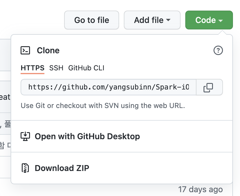 git clone <ํด๋ก ๋ฐ์ ๋ด ๋ ํฌ ์ฃผ์>